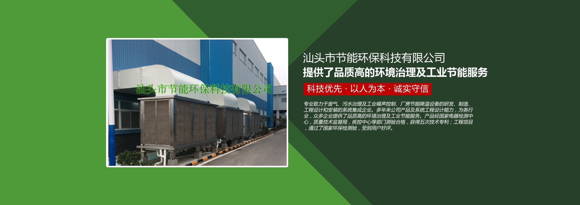 汕頭市節(jié)能環(huán)保科技有限公司創(chuàng)建于1998年,是一家專業致力于廢氣、污水、粉塵、噪聲治理,廠房節(jié)能降溫設備的研發(fā)、制造、工程設計和安裝的系統集成企業。多年來公司產品及系統工程設計能力,為各行業,眾多企業提供了品質高的環(huán)境治理及工業節(jié)能服務。產品經國家電器檢測中心,質量技術監(jiān)督局,疾控中心等部門測驗合格,獲得五次技術專利;工程項目通過了國家環(huán)保檢驗檢測,受到用戶好評。